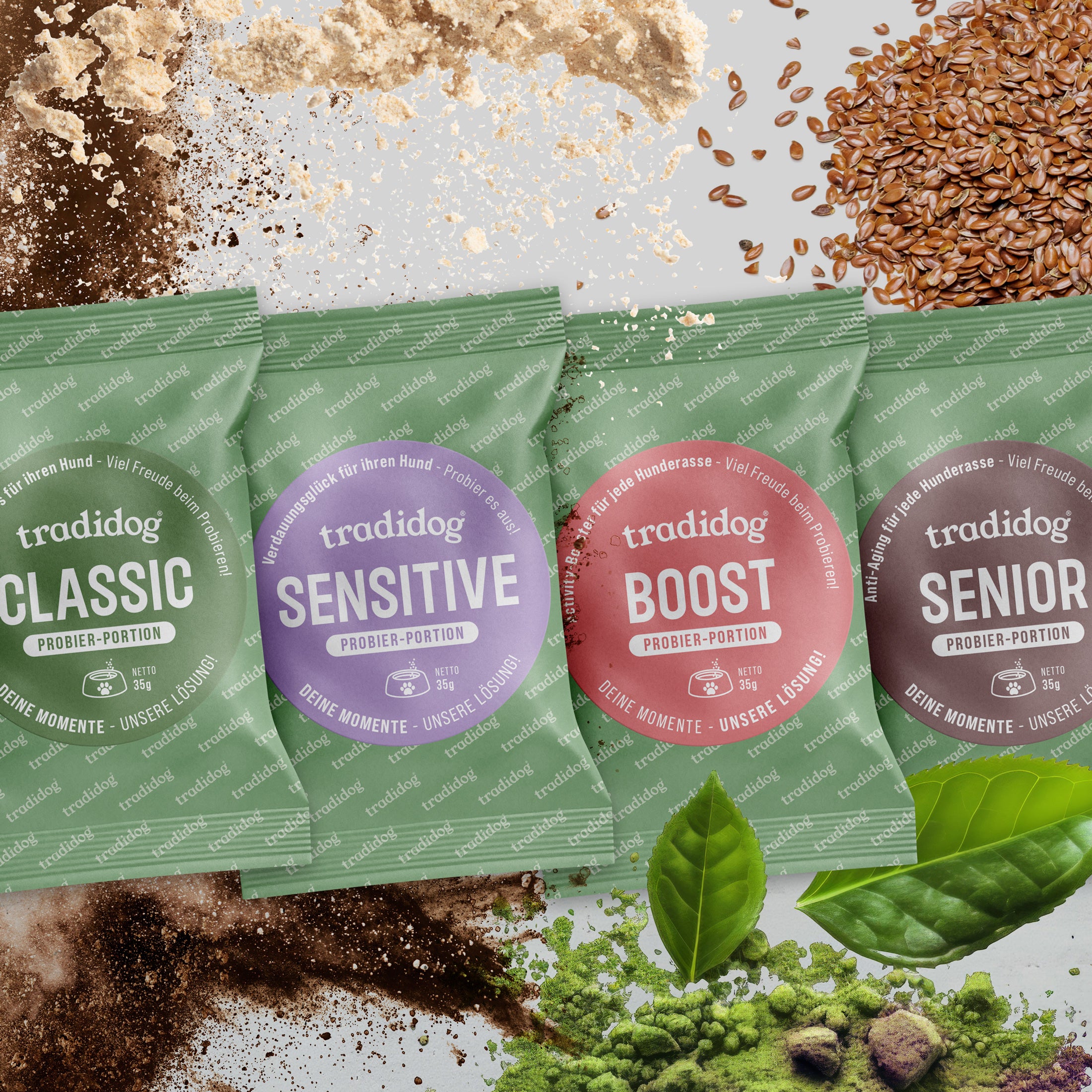 Tradidog ist ein 100% natürliches Futtertopping aus der Schweiz – entwickelt für mehr Gesundheit, Glanz und Lebensfreude bei deinem Hund.